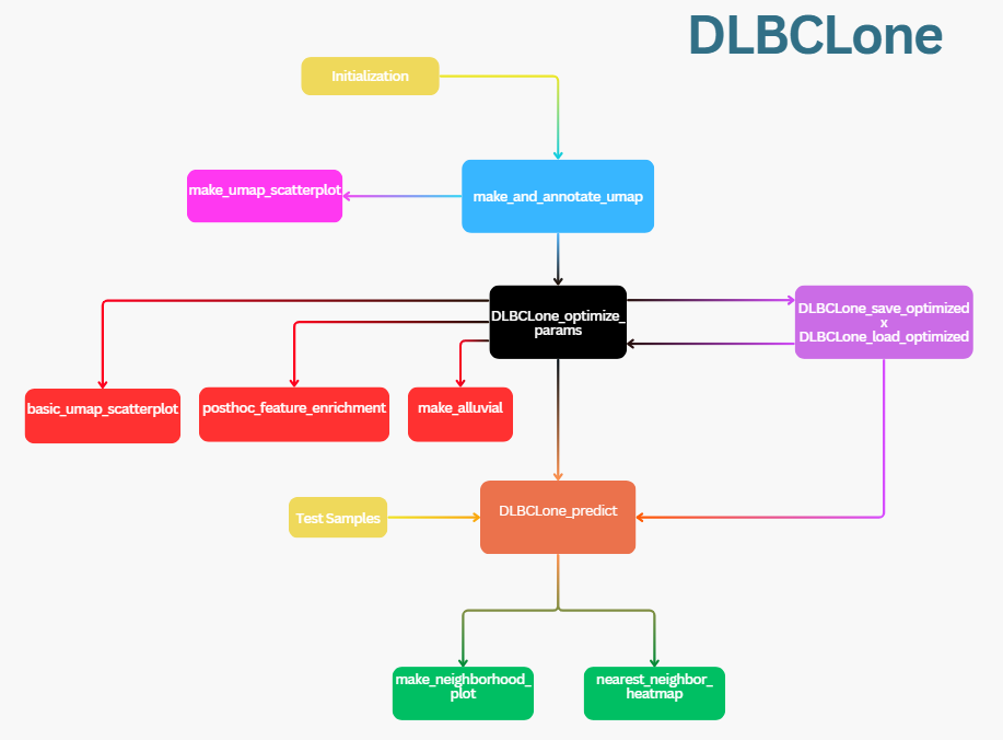 DLBCLone is a data-driven, open-source classifier for diffuse large B-cell lymphoma (DLBCL) genetic subtypes. It combines UMAP for dimensionality reduction, with a weighted k-nearest neighbors (KNN) algorithm to label samples based on neighborhood association.