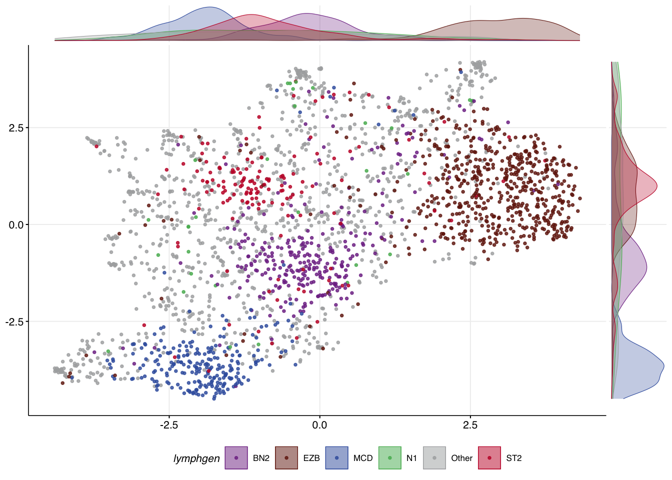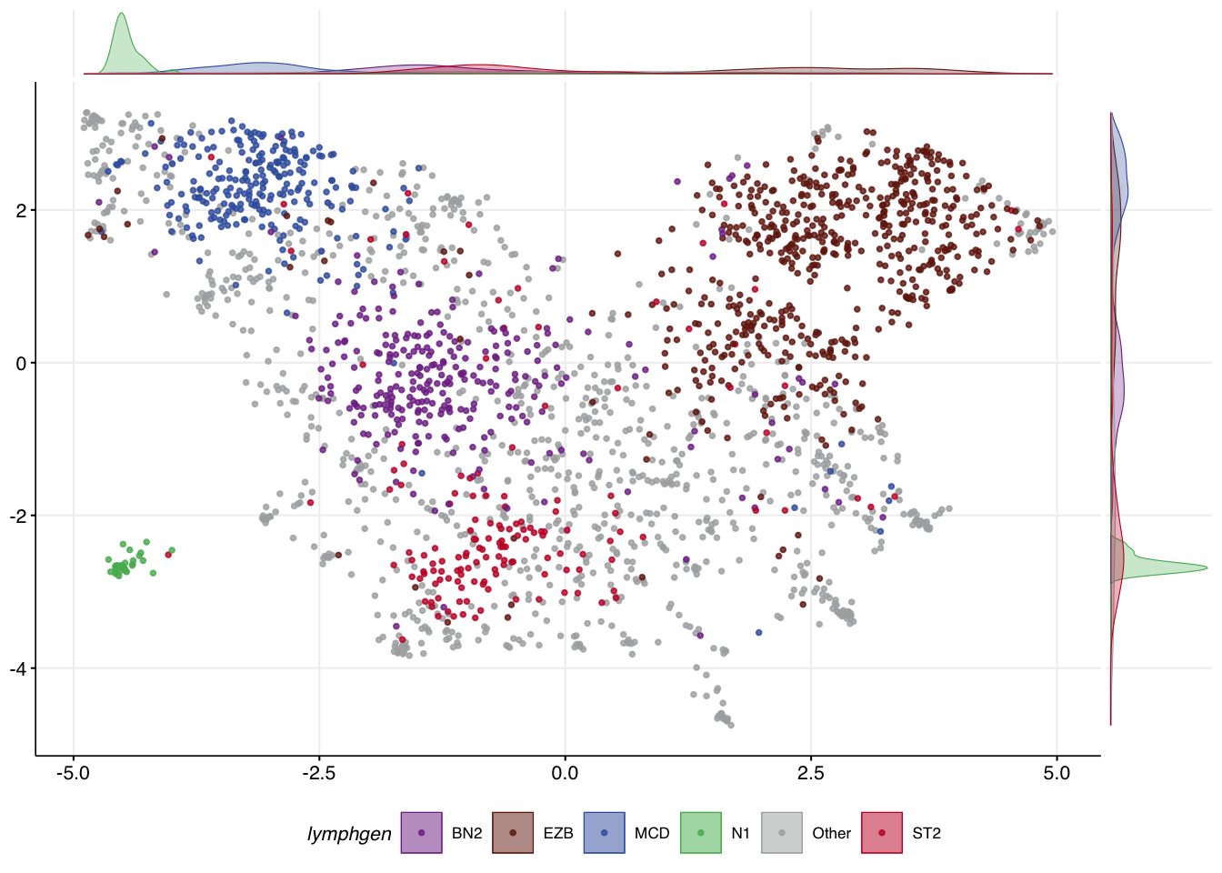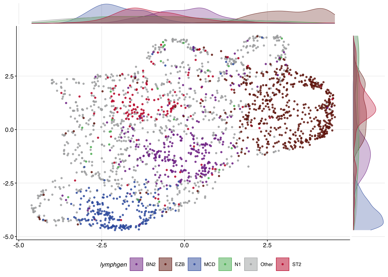 lymphgen %in% c("MCD","EZB","BN2","N1","ST2","Other"))Exploring and selecting features